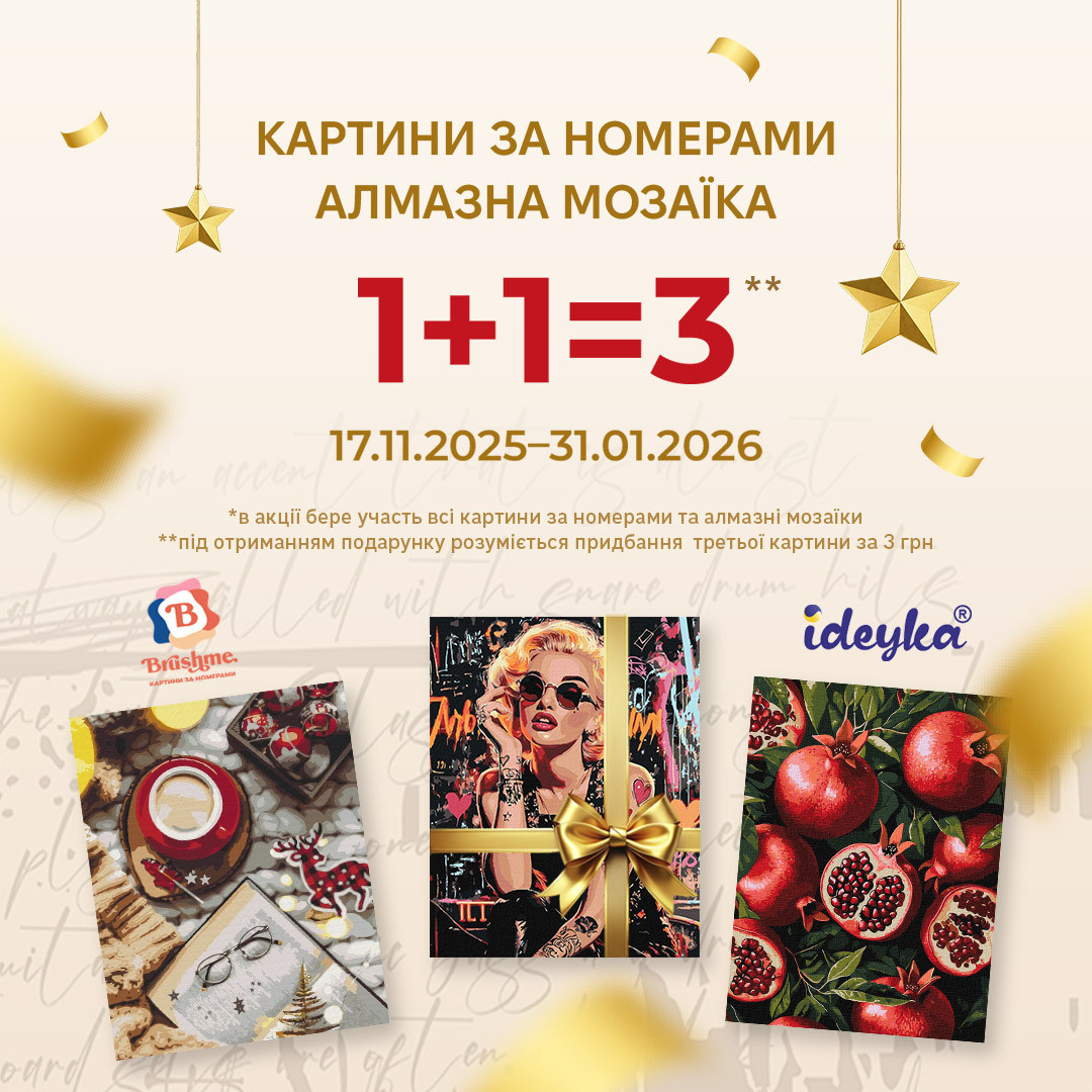 * В акції беруть участь усі картини за номерами та алмазні мозаїки.