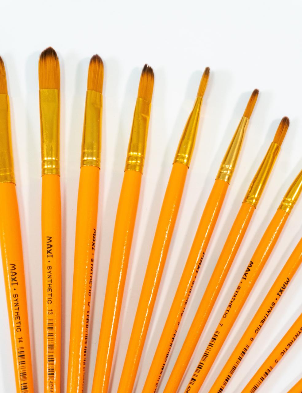 Пружний пензель з синтетичним ворсом підходить для роботи з усіма видами фарб, особливо олійними і акрилом.