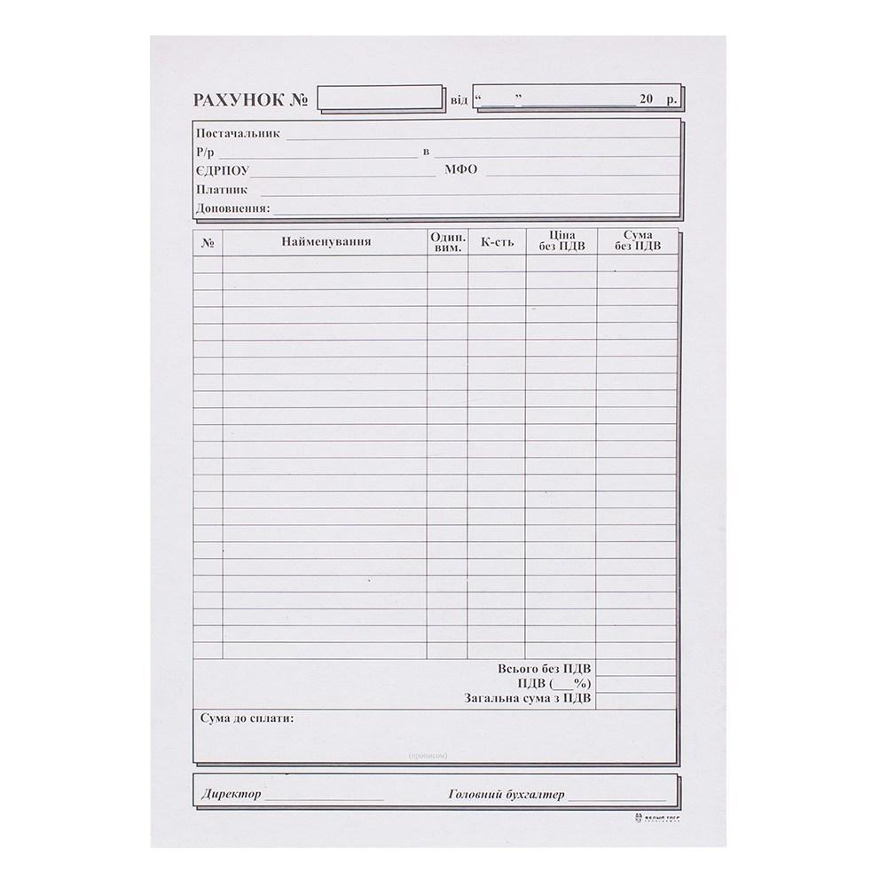Цей бланк призначений для виписки рахунку контрагенту. Самокопіювані бланки використовуються в тих випадках, коли потрібно кілька копій документа.