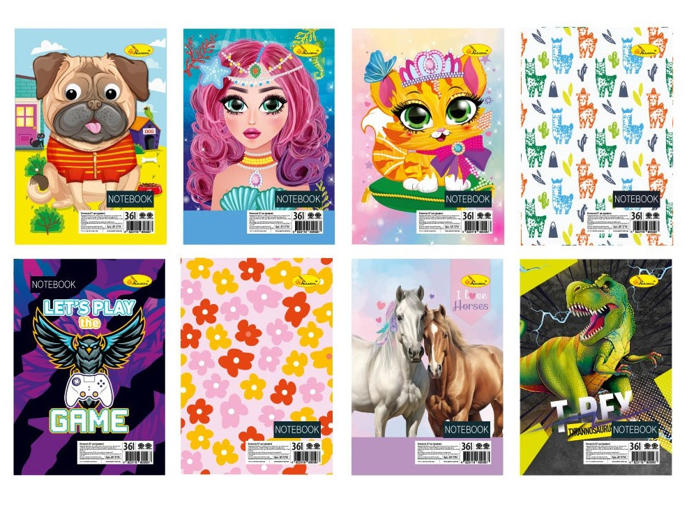 | Найменування | Блокнот А7 36 л спіраль клітка УФ лак крейдований карт |